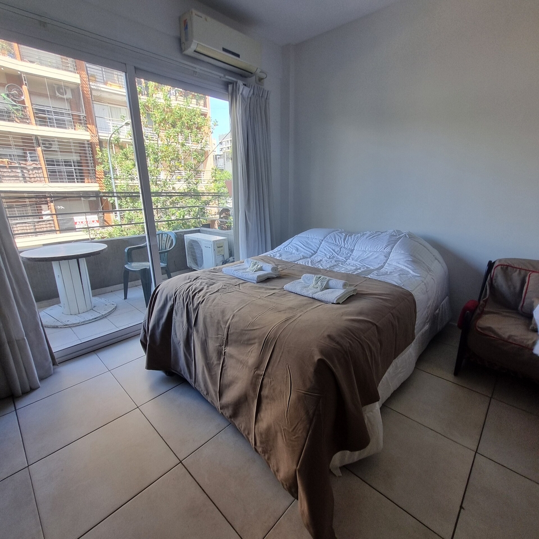 Este departamento es una joya difícil de encontrar en la ciudad: un monoambiente amplio con balcón y un patio privado ideal para relajarse al aire libre. El espacio está diseñado para la comodidad de hasta 3 personas e incluye una cocina completamente equipada, aire acondicionado, TV y WiFi El baño cuenta con ducha y todas las comodidades necesarias. La cocina amoblada permite preparar comidas caseras, con horno, heladera y utensilios disponibles. Decoración moderna y actual