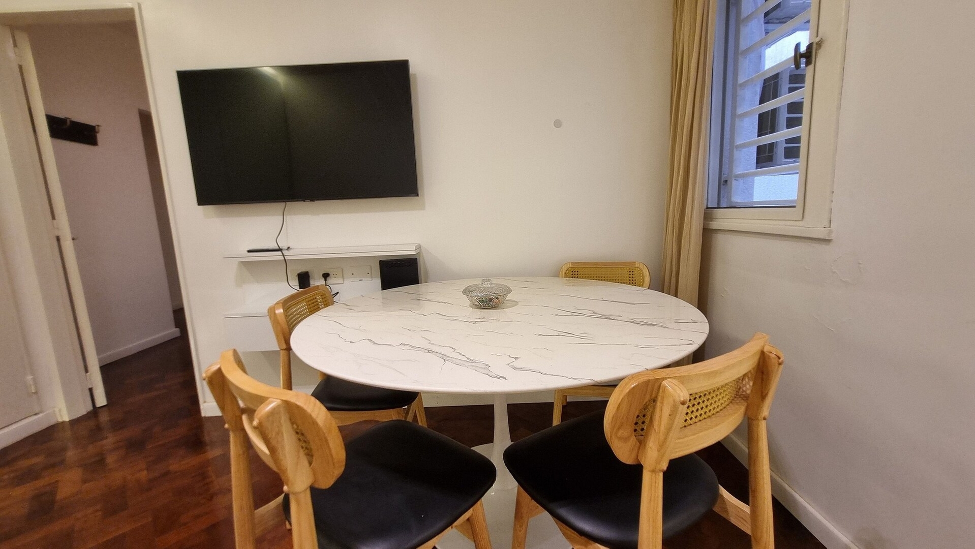 An apartment that blends modern design, warmth, and functionality. Bright, tidy, and designed to enjoy every moment: from a peaceful breakfast at the round table to a restful night in a quiet, well-climatized space. Fully equipped open kitchen, Smart TV, air conditioning, and a serene atmosphere that makes you feel at home. Perfect for those who appreciate details, comfort, and a strategic location for easy city access.