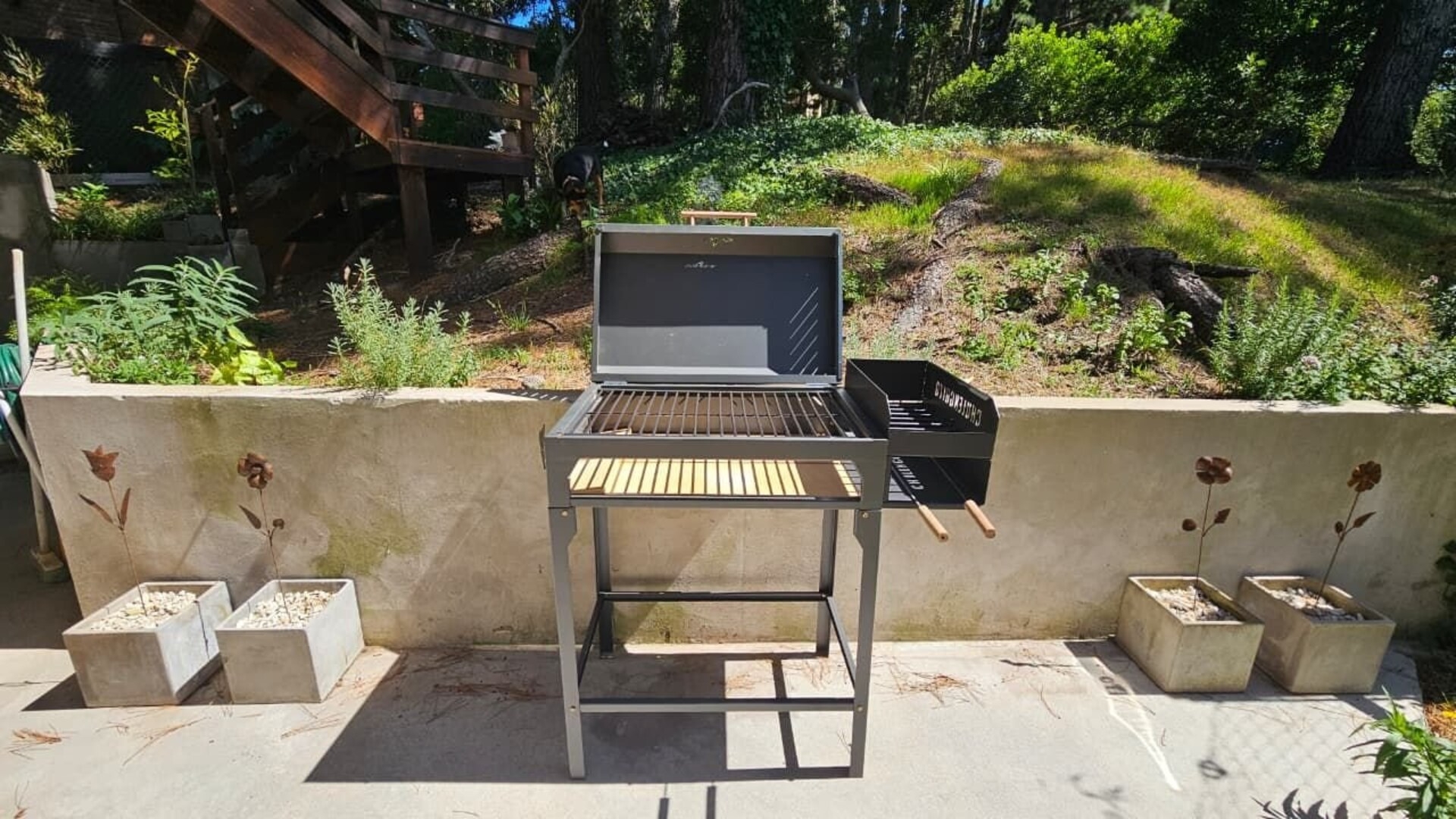 Cuenta con chulengo/ parrilla y mesa con sillas en el patio para disfrutar del bosque.