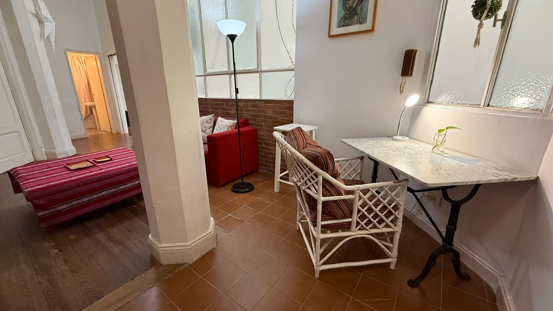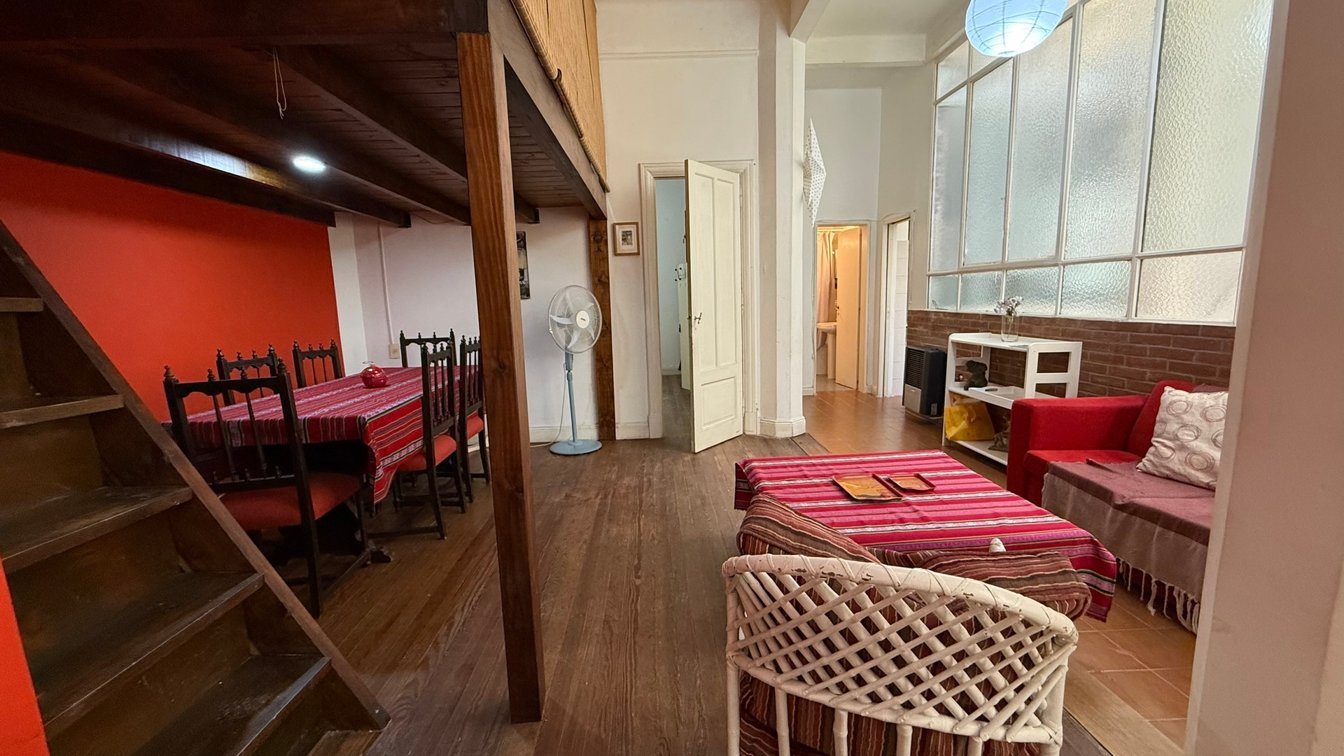 Loft amplio de 56 m² con diseño industrial y techos altos, ubicado en Balvanera a 300 m de Av. Corrientes y Av. Callao. Cuenta con living, comedor, cocina integrada, dormitorio independiente con cama doble y entrepiso con cama simple. Ideal para estadías turísticas o laborales, con excelente conexión a subte y colectivos. Ubicación céntrica con comercios, cafés y restaurantes a pocos pasos. El alojamiento no cuenta con televisión.