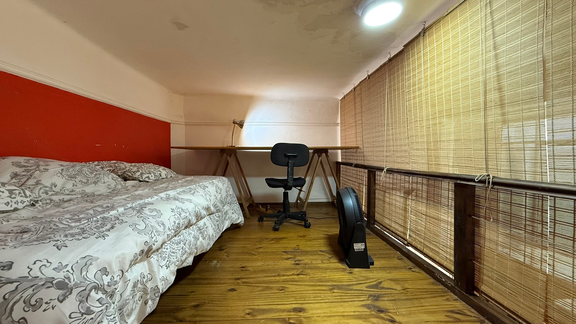 Además, el departamento cuenta con un entrepiso de aproximadamente 1,30 m de altura donde se ubica una cama simple, ideal como espacio adicional de descanso.