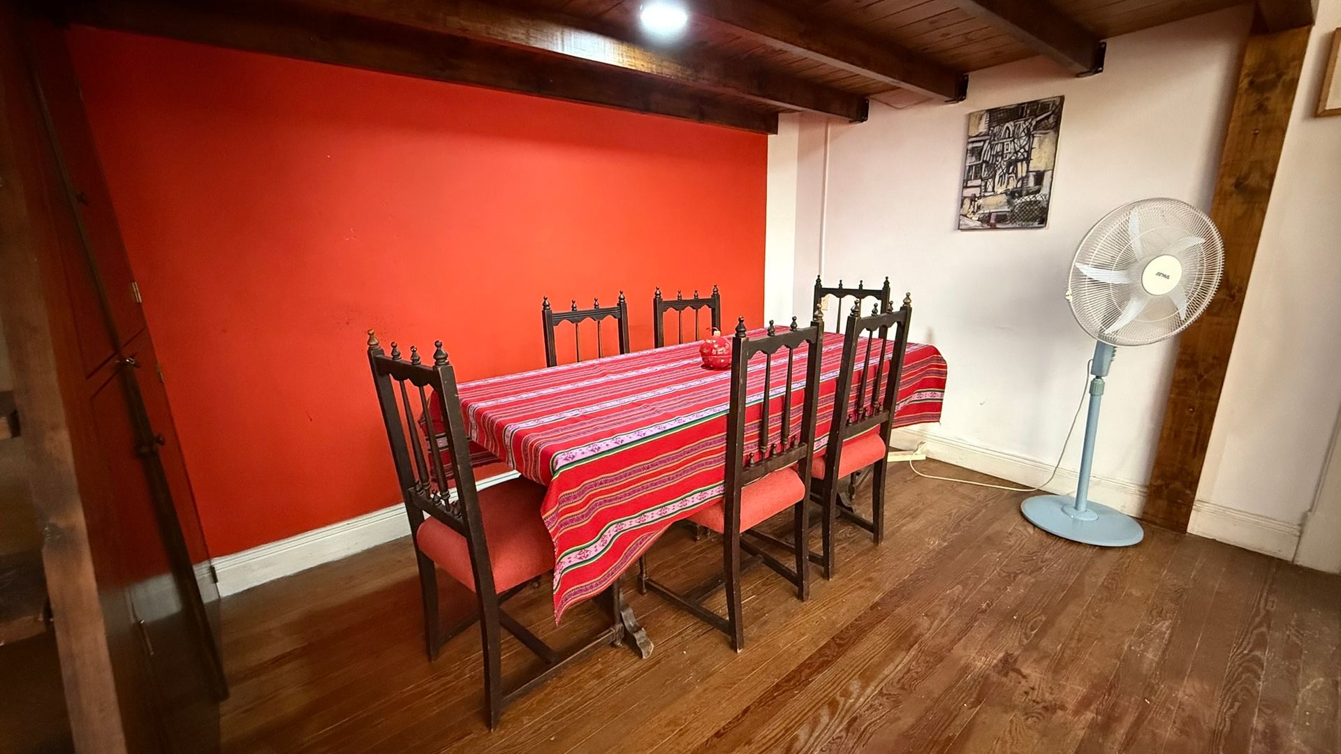El comedor se encuentra debajo del entrepiso y tiene una mesa amplia con sillas, perfecta tanto para comidas como para usar como espacio de trabajo.